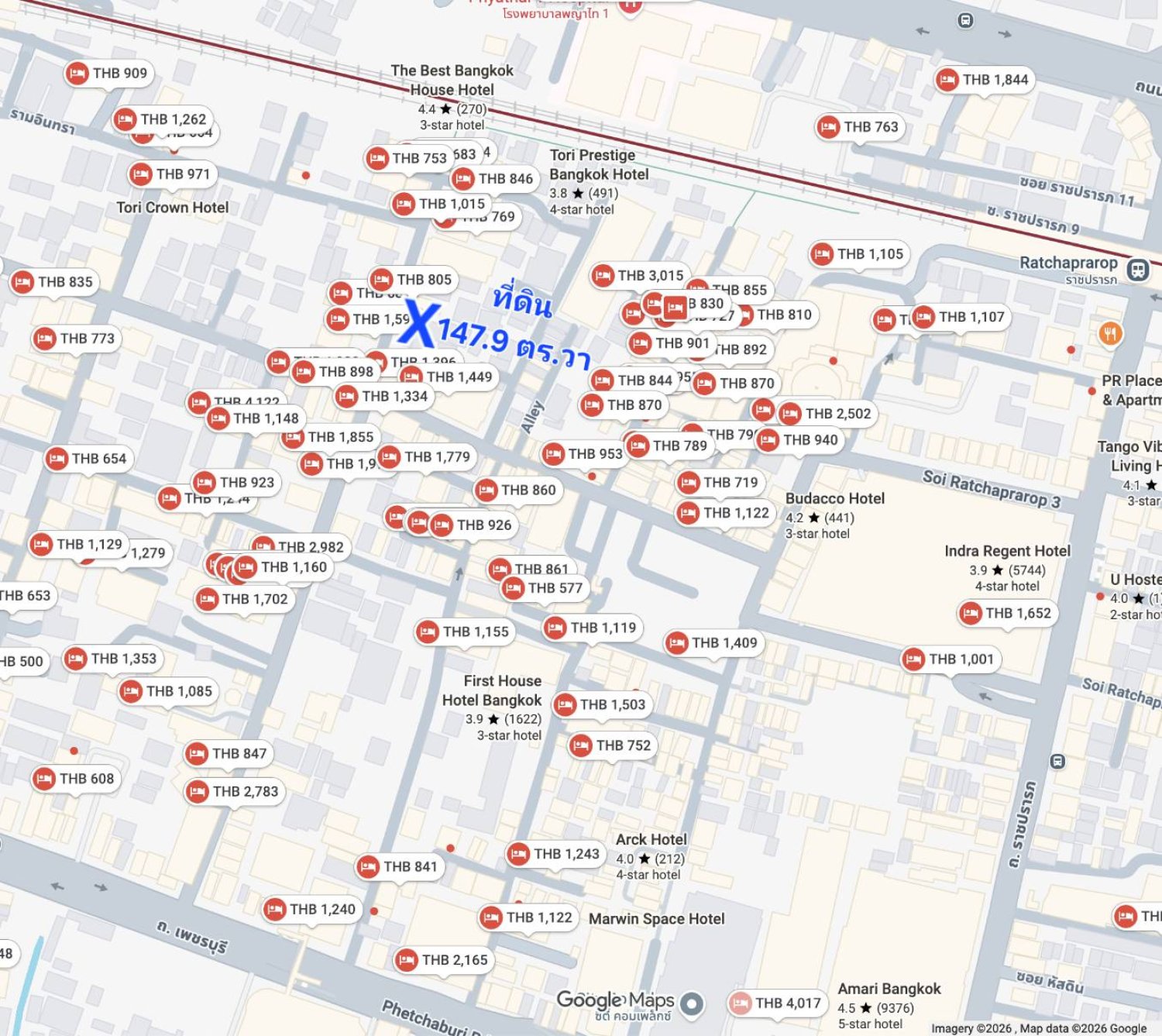 Hyper Rare! ติดตลาดประตูน้ำ อินทราแสควร์ คึกคักตลอดปี!! ขายที่ดิน 147.9 ตร.วา เพชรบุรี 15 แปลงใหญ่สุดท้ายในซอย!! โรงแรมทำเลนี้ขึ้นเท่าไหร่ ห้องพักไม่เคยพอ!! MRT สายสีส้มเพียง 400 เมตร!!