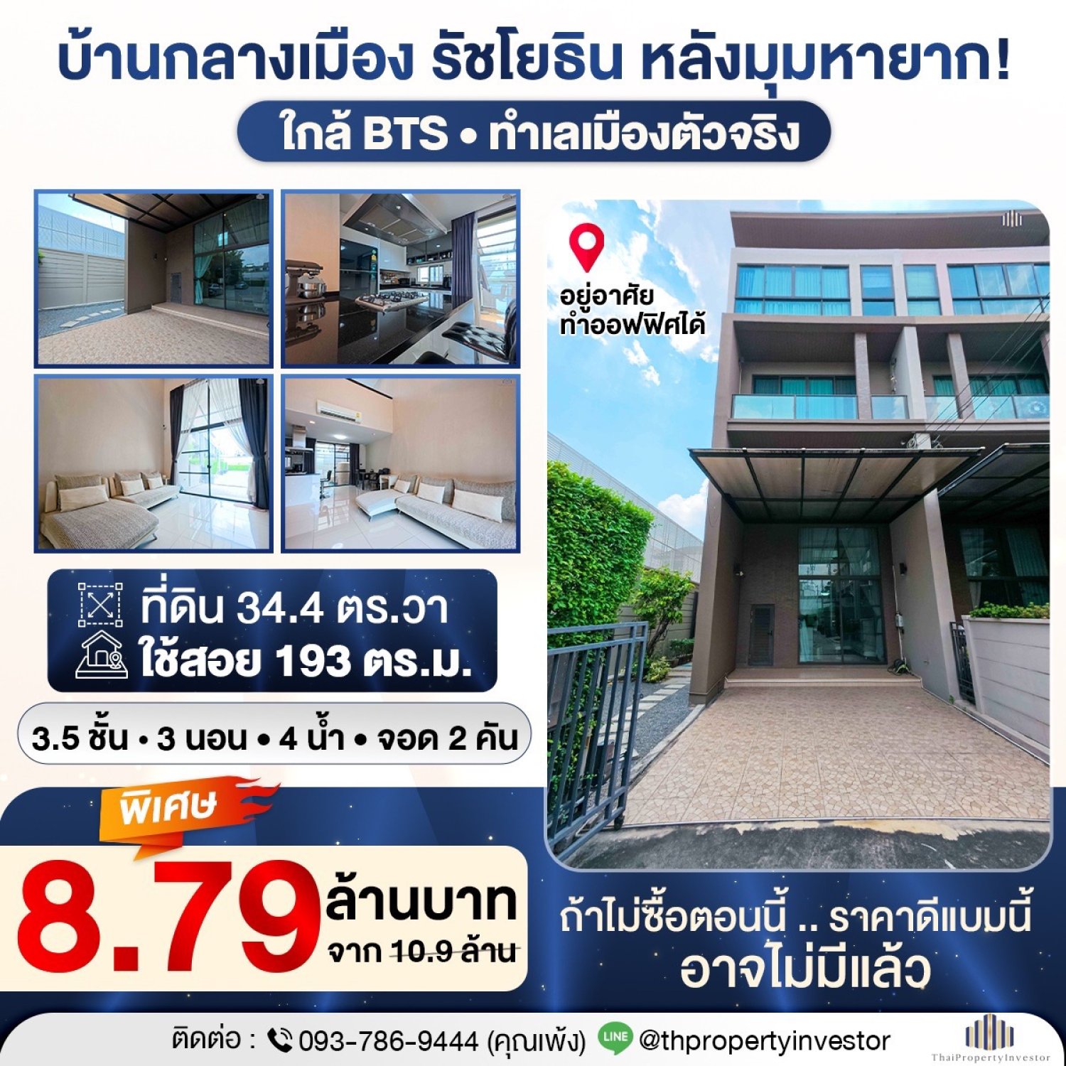 บ้านกลางเมืองรัชโยธิน ทำเลศักยภาพ ใกล้ BTS พร้อมใช้ชีวิตระดับเมือง!! ขายถูกบ้านกลางเมืองหลังมุมขนาด 34.4 ตร.วา ใช้สอย 193 ตร.ม.บ้านแบบนี้คนหามีเยอะ แต่ของมีไม่พอใครไวได้ก่อน !!